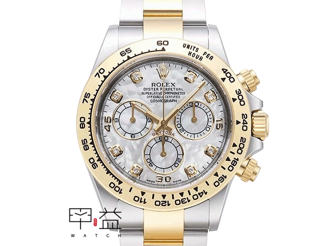 不鏽鋼及18K黃金半金材質 銀色面盤及金羅馬數字IX鑲鑽 星星鑽石時標 五珠鏈帶