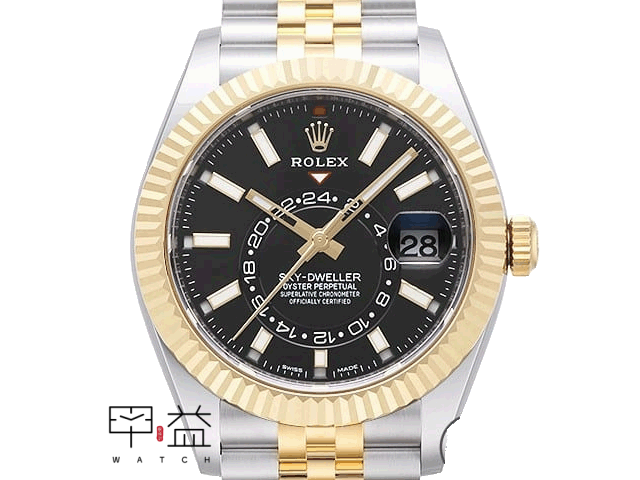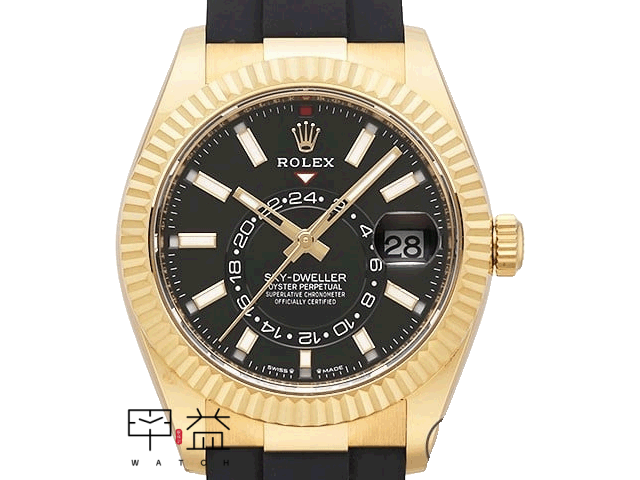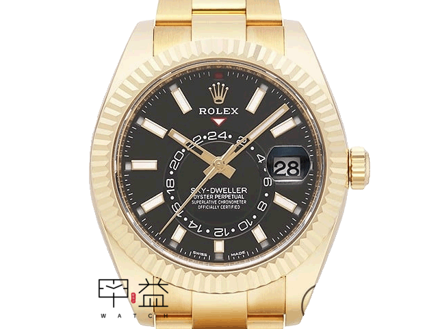 蠔式 天行者 沙羅裝置 年曆錶 18K黃金 自動上鏈 亮黑色錶面 三角坑紋外圈