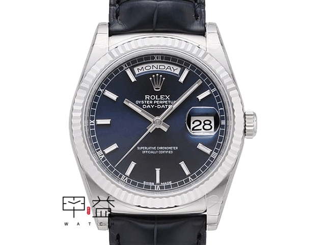 蠔式恆動星期日曆型腕錶 18K白金 藍面 停產款