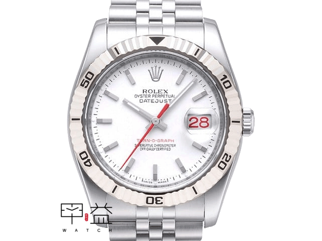 爬山虎 TURN-O-GRAPH 白色面盤 18K白金可旋轉錶框 蠔式 特殊紅色指針及紅色日期窗數字