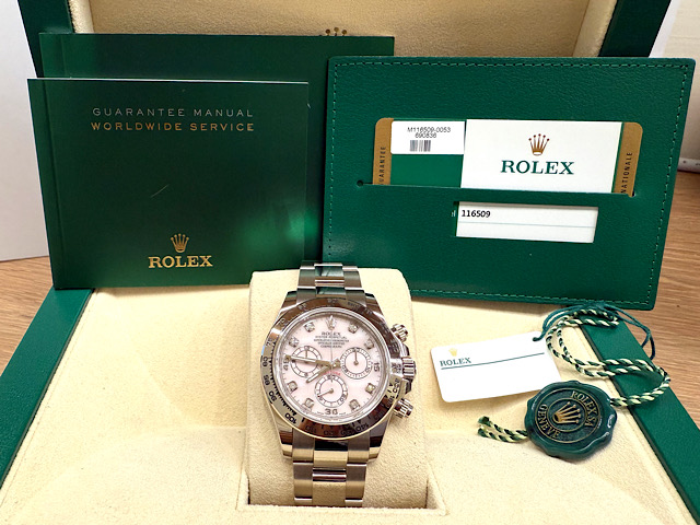ROLEX 勞力士 Daytona 116509 迪通拿 18K白金 稀有粉紅母貝八鑽面 2019年
