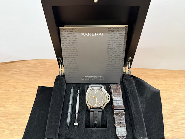 PAM0351 PAM351 鈦金屬 棕色三明治面盤 三日鍊 自動上鍊 2014年">