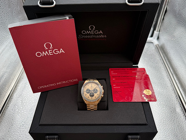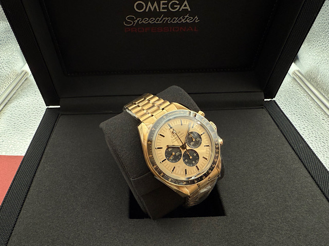 OMEGA 歐米茄 Speedmaster Moonwatch Professional 超霸 速霸 Moonshine金 REF:31060425099002.金色面盤 余文樂 計時碼表 專業登月錶 2025年未使用品