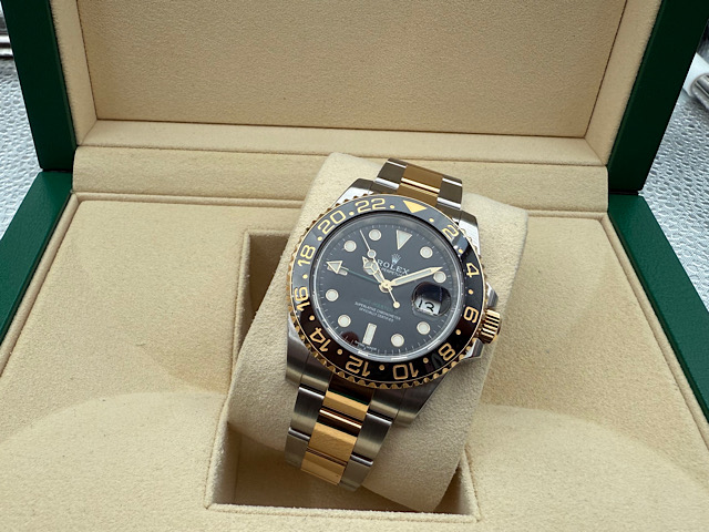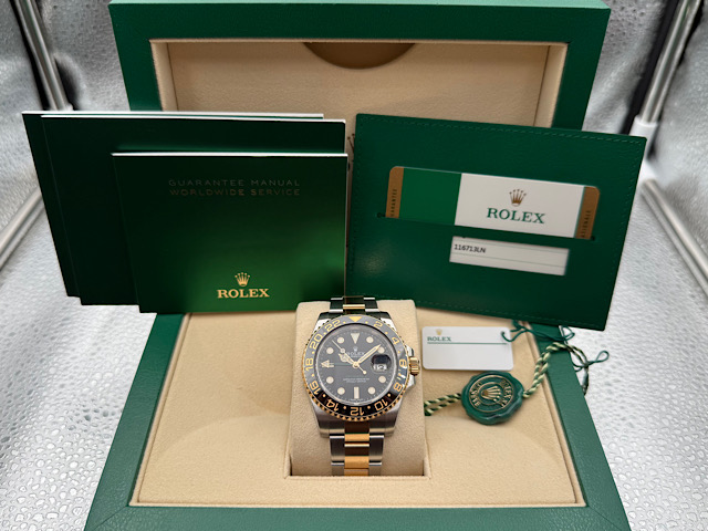 ROLEX 勞力士 GMT-Master II 格林威治型 116713LN 蠔式 格林威治型 116713 LN 綠色兩地時區指針 陶瓷錶圈 18K黃金 半金款 2018年 |