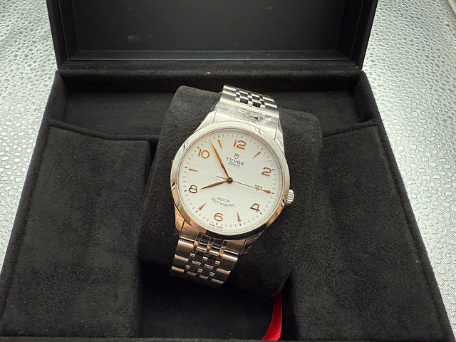 Tudor 帝舵 1926系列 <font color=91650 白色格紋浮雕面盤 玫瑰金色時標與指針 不鏽鋼材質 2025年未使用品