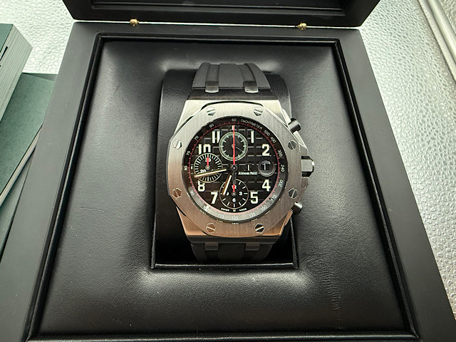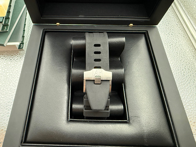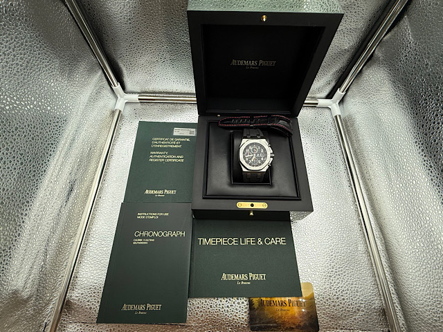 功能: 愛彼錶原廠Cal. 3126/3840自動上鏈機械機芯 / 時、分、小秒針時間指示 / 放大日期窗 / 60秒、30分鐘、12小時計時碼表 / 動能儲存50小時 / 防水100米