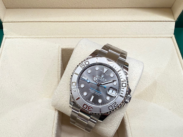 ROLEX 勞力士 Yacht-Master 37 中型 268622  石板灰面盤 藍色秒針 PT950鉑金刻度錶圈鉑金 2025年 未使用新品