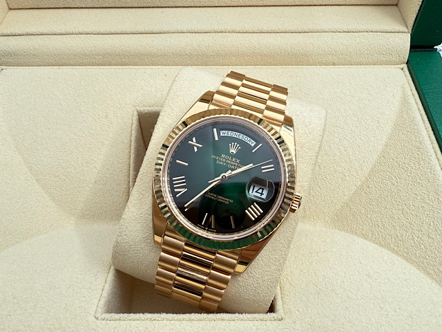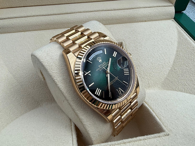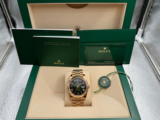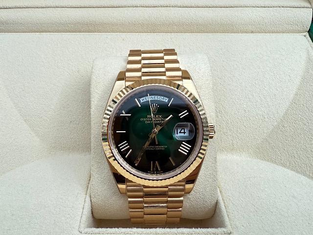 ROLEX 勞力士DAY-DATE40 蠔式 228238  18K黃金材質 煙燻綠面盤 2025年