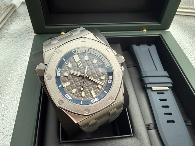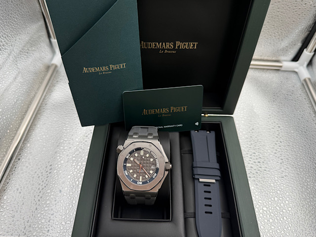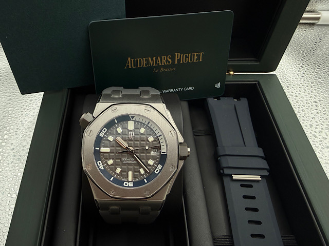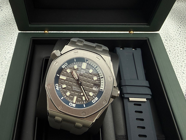 AUDEMARS PIGUET 愛彼 ROYAL OAK OFFSHORE 皇家橡樹離岸系列15720ST.OO.A009CA.01潛水腕錶 灰色錶面鐫刻「Méga Tapisserie」超大型格紋裝飾圖案 2025年