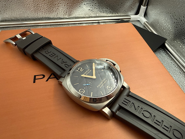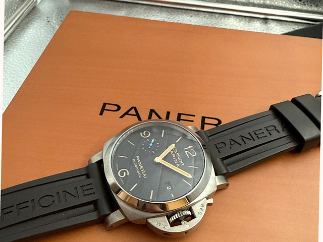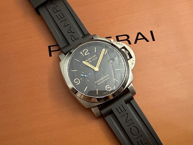 PANERAI 沛納海 Lumnior Marina PAM01351 三日鍊 鈦金屬 菸草色三明治面盤金色指針 藍色小秒針 2020年