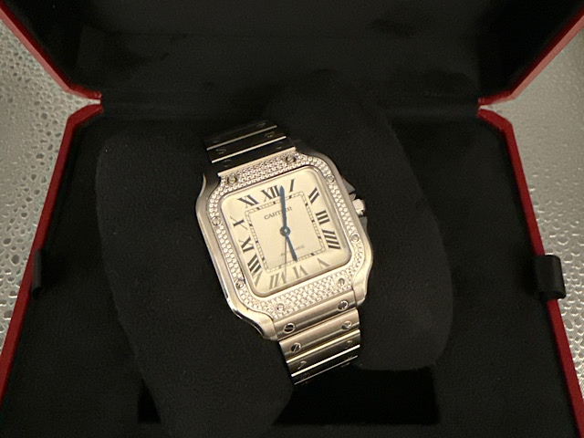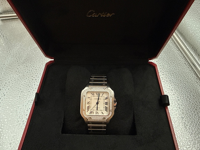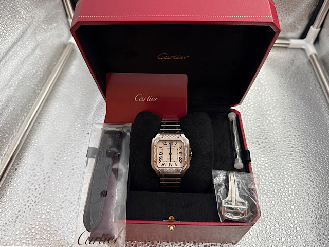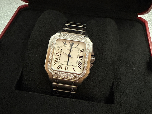 CARTIER 卡地亞 Santos de Cartier 山度士 W4SA0005 原廠鑲嵌華麗鑽石錶框 不鏽鋼 中型款  2021年