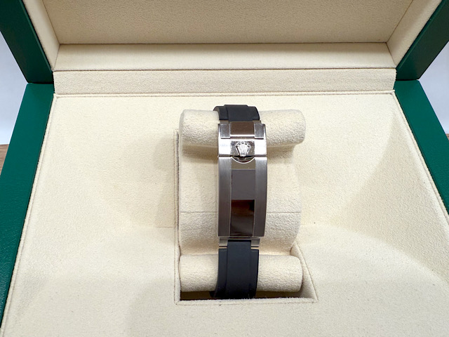 18k白金材質錶殼、錶帶、摺疊扣、旋入式錶冠 / 黑色面盤 / 夜光賓士指針、時標 / Cerachrom黑色陶瓷刻度雙向旋轉錶框 / Oysterflex黑色橡膠錶帶 / Glidelock延展系統蠔式保險扣 / 藍寶石水晶玻璃鏡面 |